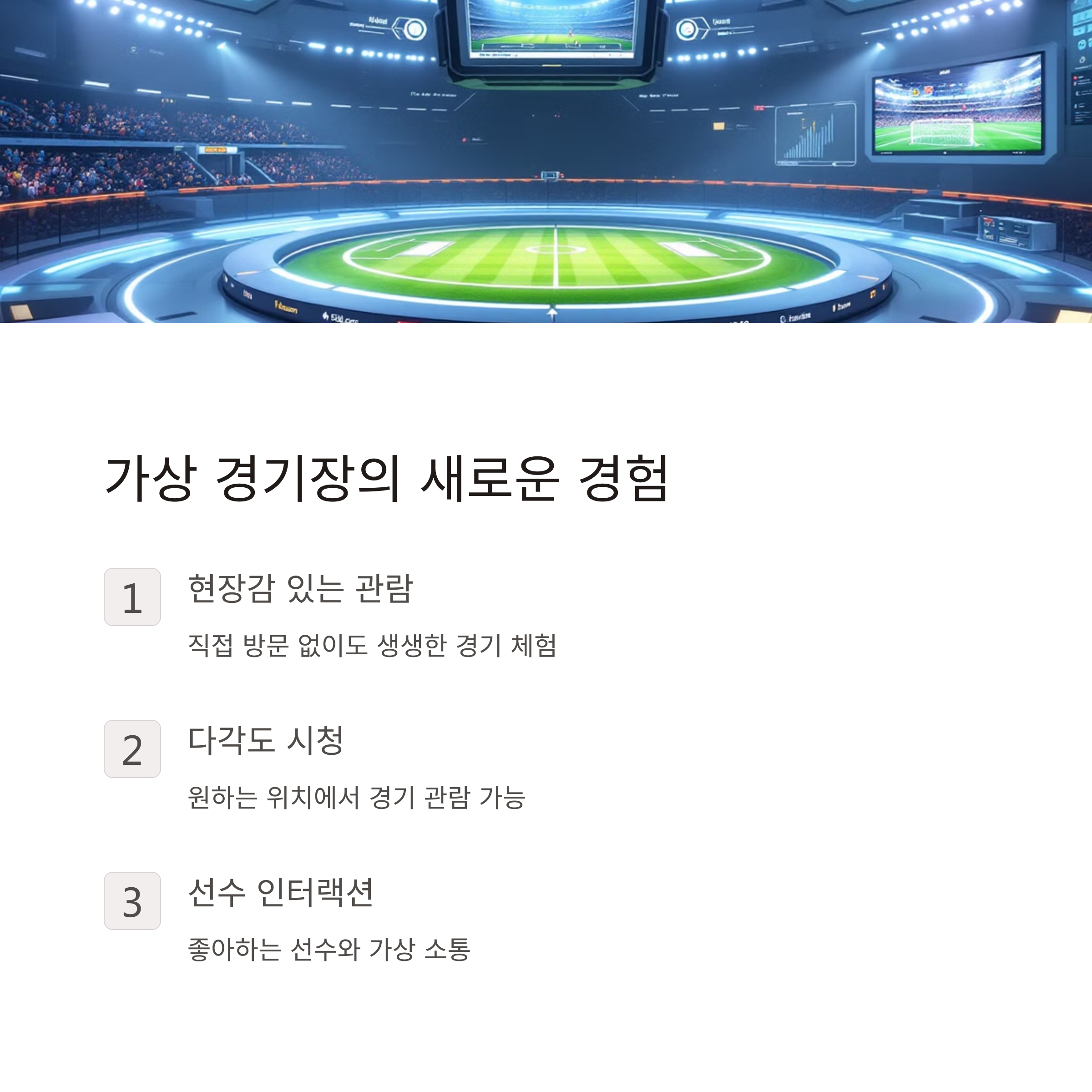 | VR 기술 | 현실감 있는 경기 관람과 몰입형 스포츠 콘텐츠 제공 |