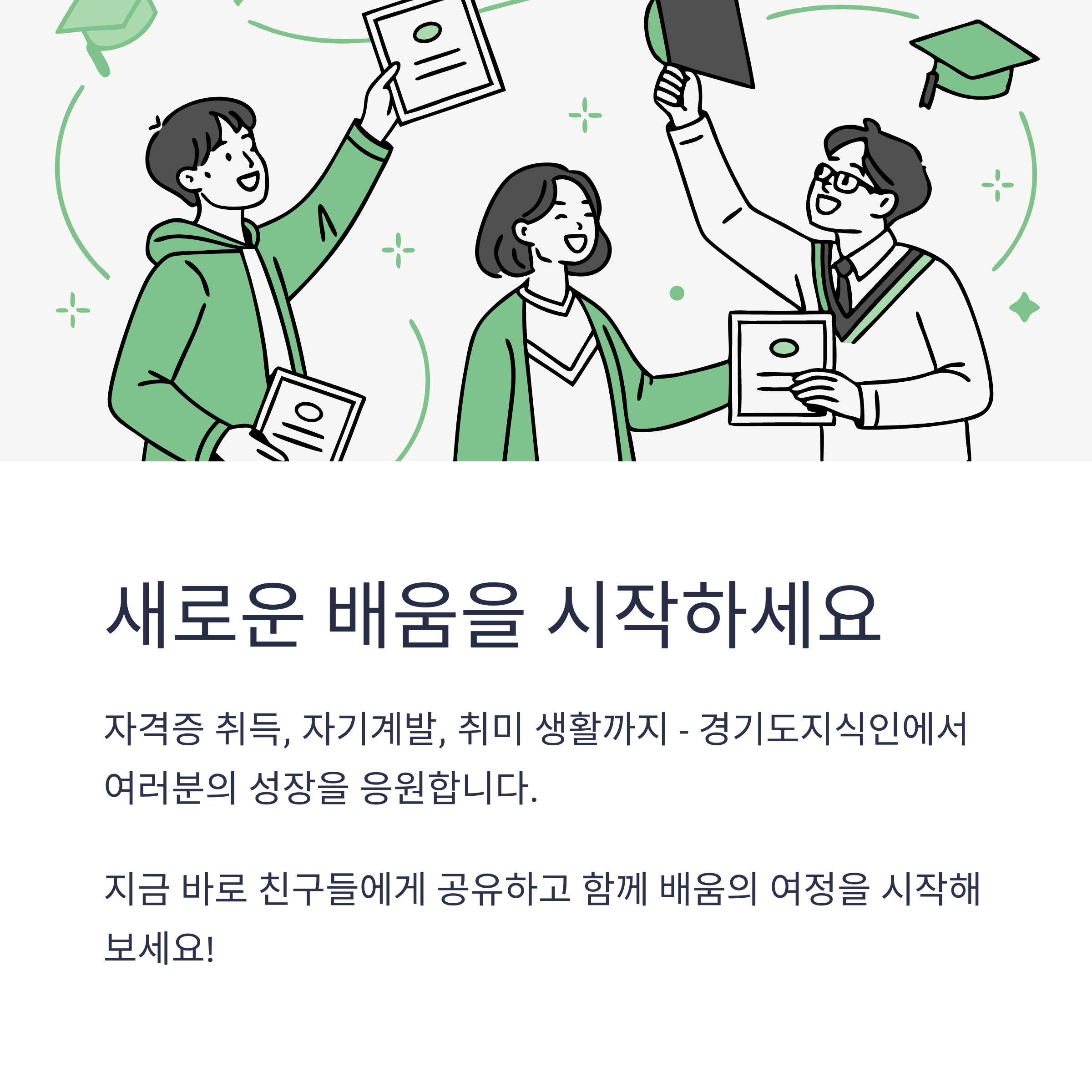 경기도지식인은 모든 국민에게 열린 학습 기회를 제공합니다. 자격증 취득, 자기계발, 취미 생활까지 다양한 목적에 맞는 강의를 찾을 수 있는 경기도지식인에서 새로운 배움을 시작해보세요.
