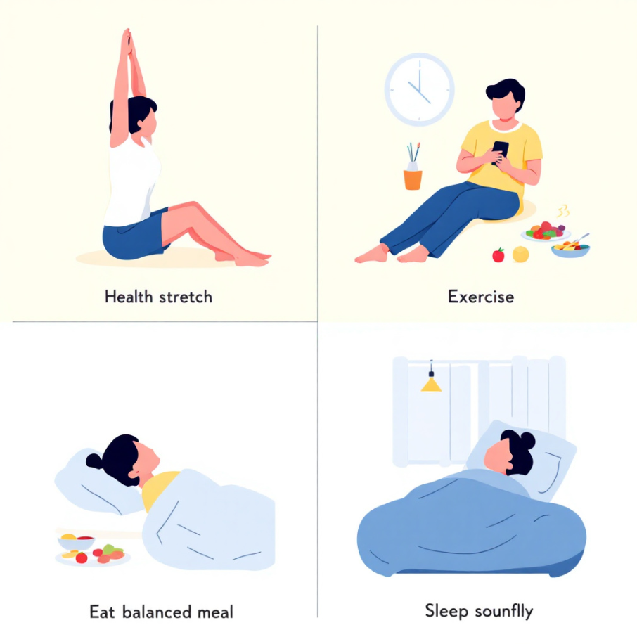 건강한 생활 습관을 만들기 위해서는 꾸준한 실천이 중요합니다. 하루 10분씩이라도 간단한 운동을 하면 혈액순환이 원활해지고 신체의 활력이 증가합니다. 특히, 스트레칭이나 요가는 몸의 균형을 잡아주고 근육의 긴장을 완화하는 데 큰 도움이 됩니다. 하루 중 언제든 자신에게 맞는 운동 시간을 정해 습관으로 만들면, 장기적으로 건강한 몸을 유지할 수 있습니다.