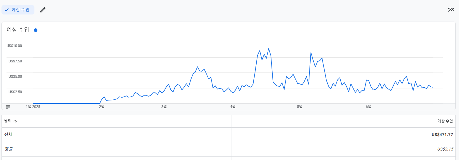 2월 1일부터 수익승인이 나기 시작했고 조금씩 우상향 하다가 한때는 하루 8~9달러까지 나옴