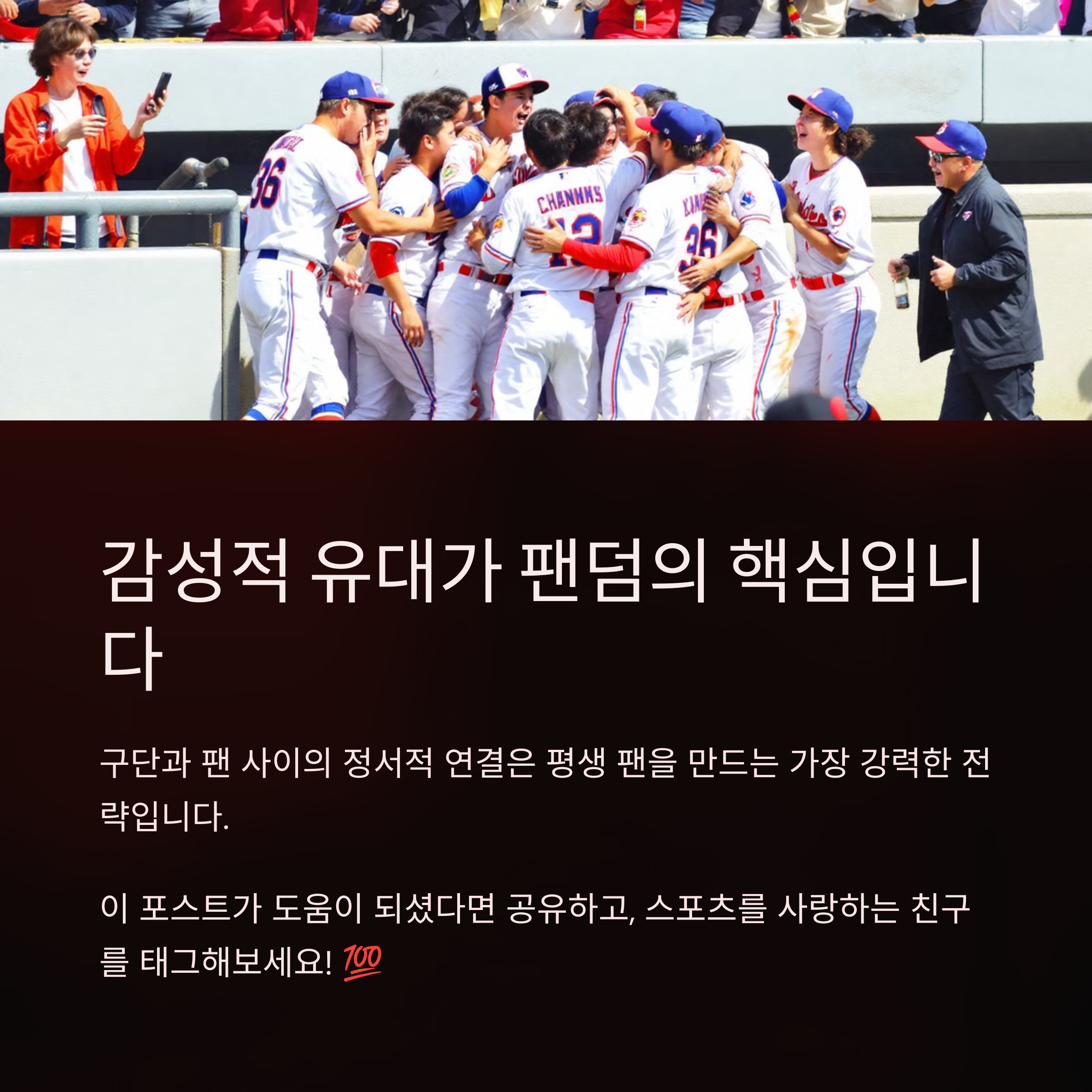 여러분이 응원하는 팀은 어떤 특징을 가지고 있나요? 구단이 팬들과의 소통을 잘하고 있다고 생각하시나요? 댓글로 여러분의 생각을 공유해 주세요!