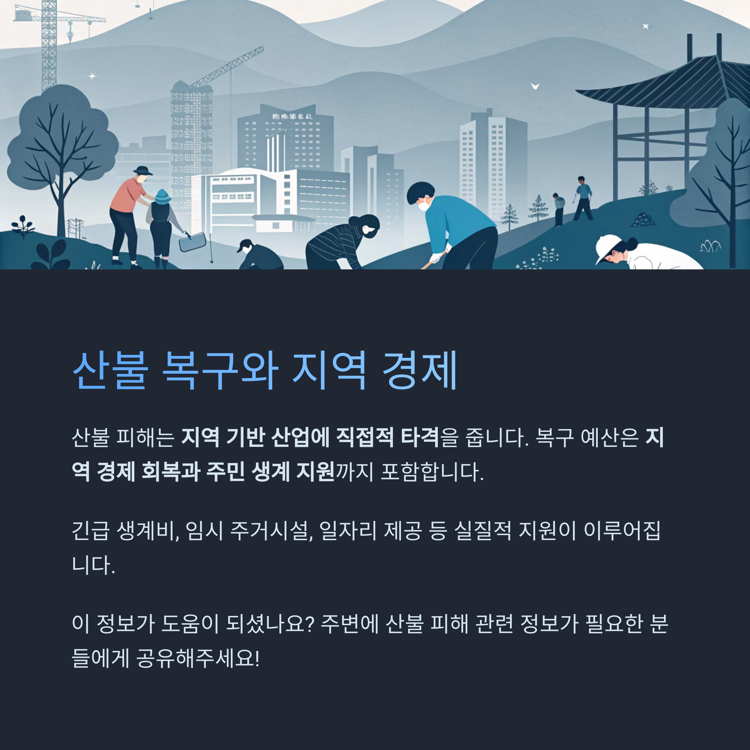 산불 피해 지역은 관광, 농업, 임업 등 지역 기반 산업이 직접적으로 타격을 받습니다.